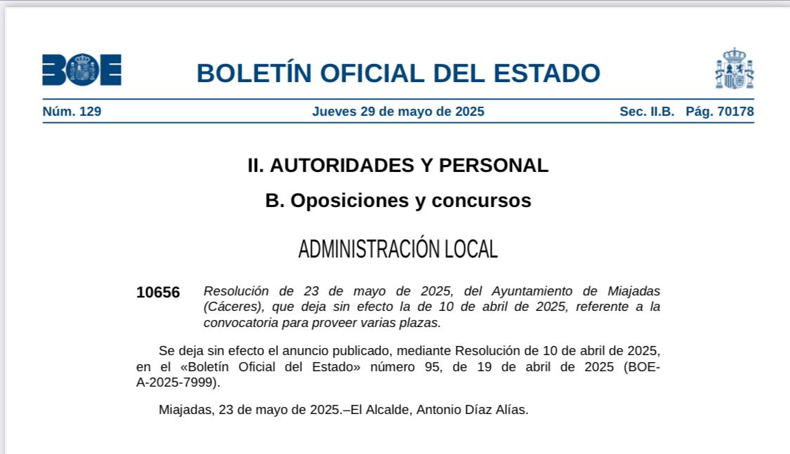 🚨**¡Atención opositores! Importante actualización sobre la convocatoria de Policía Local de MIAJADAS**