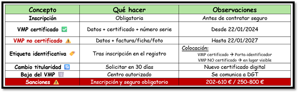 Una vez inscrito el VMP, el titular podrá obtener la etiqueta identificativa, que se coloca en el porta-identificador del vehículo.
