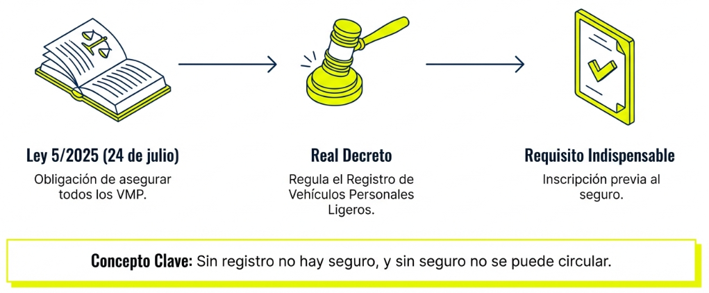 La puesta en marcha de este registro era imprescindible para dar cumplimiento a la disposición adicional primera de la Ley 5/2025 de 24 de julio, que modificó la ley sobre responsabilidad civil y seguro en la circulación de vehículos a motor para introducir la obligación de asegurar todos los vehículos de movilidad personal, que entró en vigor el pasado 2 de enero pendiente de la puesta en marcha del registro.